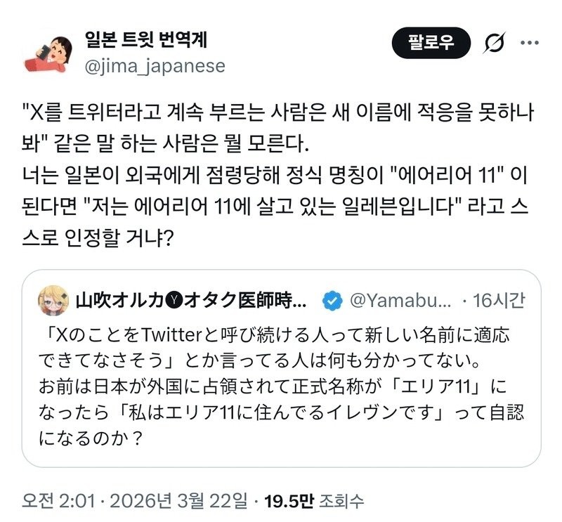 X를 트위터라고 계속 부르는 사람은 새 이름에 적응을 못한게 아니야