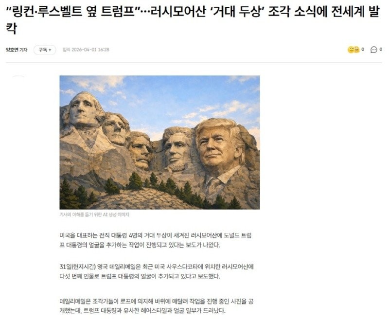 “링컨·루스벨트 옆 트럼프”…러시모어산 ‘거대 두상’ 조각 소식에 ...
