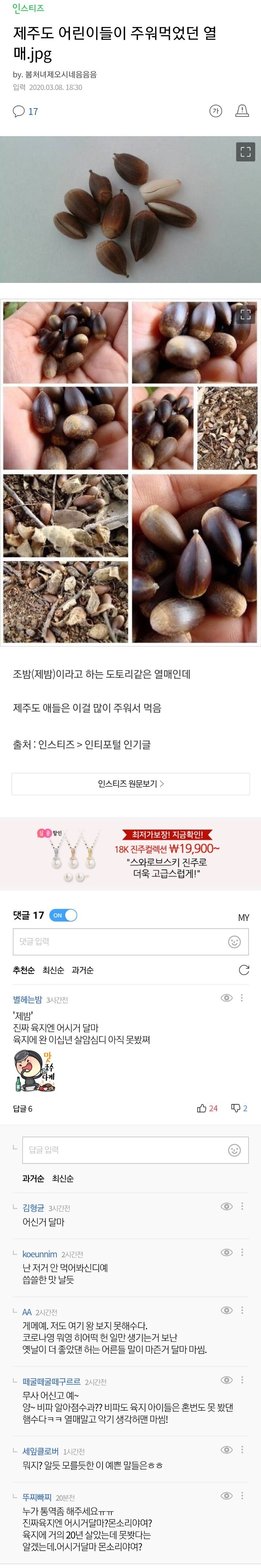제주도 아이들이 먹는다는 열매에 달린 댓글