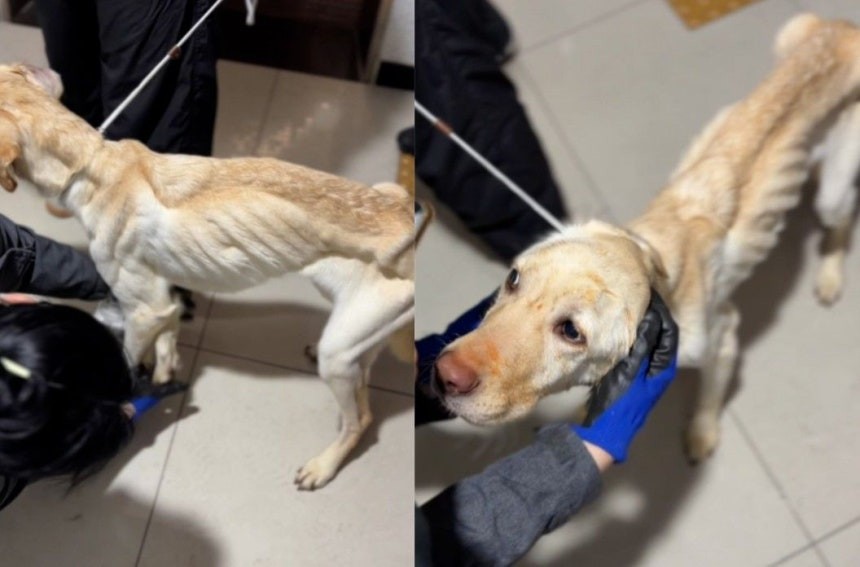 팽팽한 대치 상황이 이어지던 중 좁은 문틈 사이를 비집고 개 한 마리가 기어 나왔습니다. 누런 털을 가진 대형견 리트리버였죠. 하지만 우리가 흔히 아는 늠름한 모습이 아니었습니다. 갈빗대와 척추뼈가 훤히 드러난 처참한 몰골이었습니다. 발견 당시 극도의 기아 상태였던 녀석의 체중은 고작 17㎏. 표준 체중(40㎏)의 절반에도 못 미치는 상태였죠. “이렇게 굶겨놓고도 견주 자격이 있느냐”, “대체 어떻게 살아남았니”라며 현장에서 터져 나온 탄식은 구조단체의 소셜미디어 생중계에 고스란히 담겼습니다.