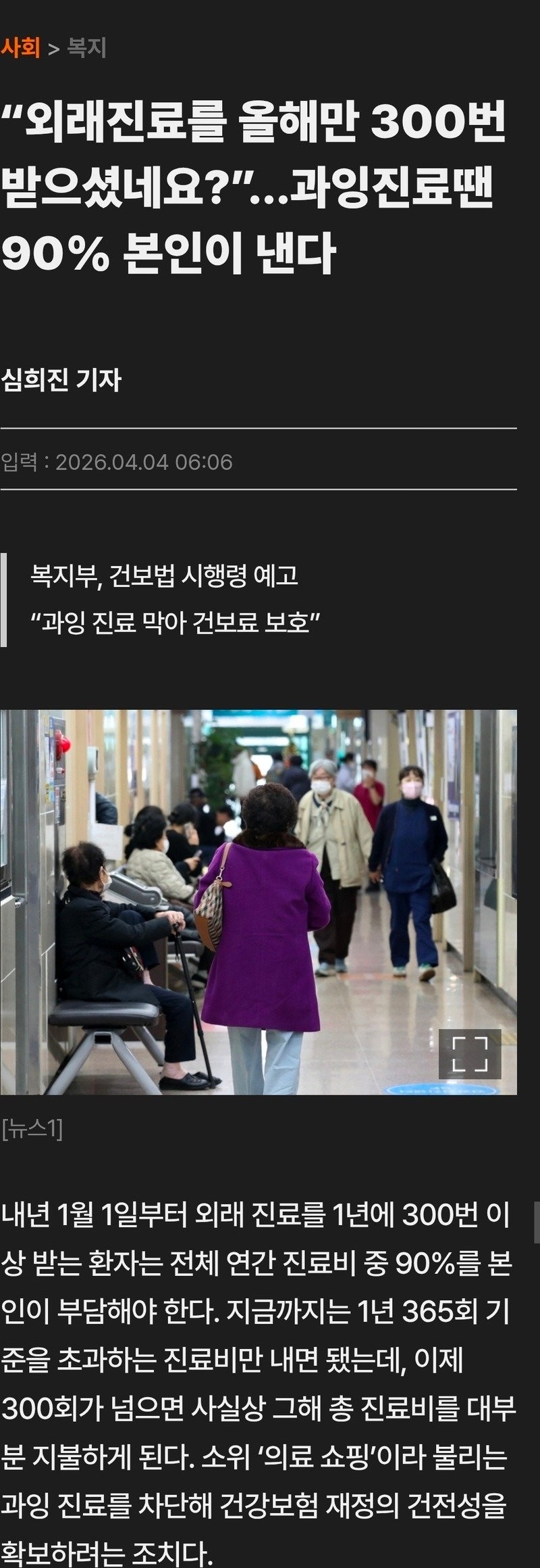 “외래진료를 올해만 300번 받으셨네요?”…과잉진료땐 90% 본인이 낸다