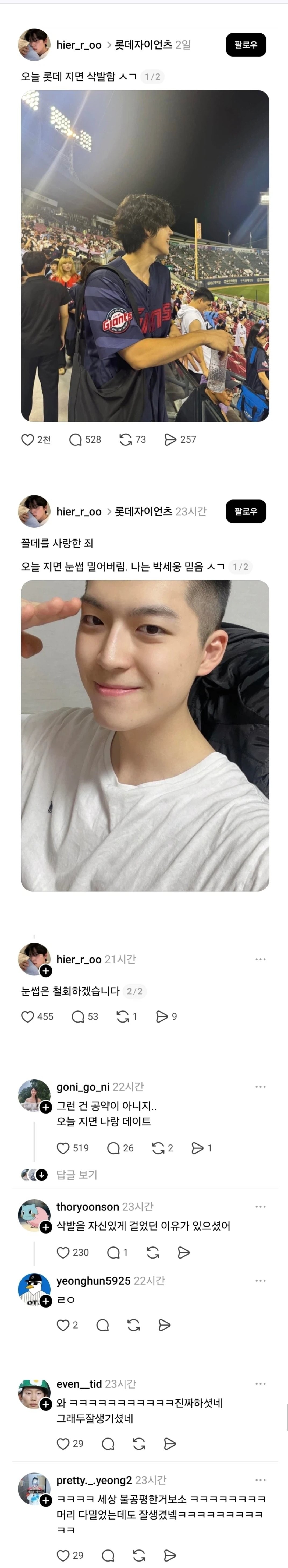 롯데가 이번 경기에서 지면 삭발하겠다는 사람