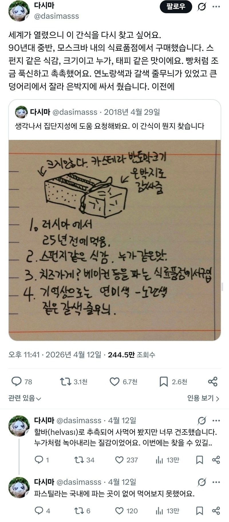 옛날에 먹었던 간식을 찾는 사람과 그걸 도와주고 싶은 사람들