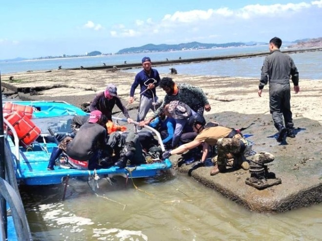 이때 인근 김 양식장에서 일하던 스리랑카 국적의 노동자 루완씨와 동료들이 사고를 목격하고 즉시 배를 몰았다. 바다에 빠진 조종사를 발견한 이들은 양식장 도구를 이용해 줄을 끊고 조종사를 구조했다. 또 조종사의 요청을 받고 구조 헬기가 위치를 찾을 수 있도록 조종복 안에 있던 연막탄을 꺼내 터뜨리는 등 초기 구조의 핵심 역할을 수행했다.