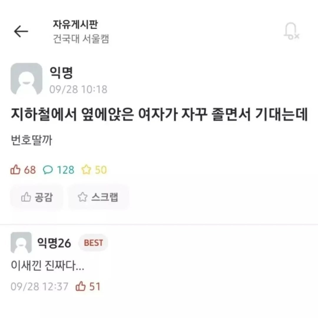 옆자리 여자 졸면서 기대는데 번호 딸까?