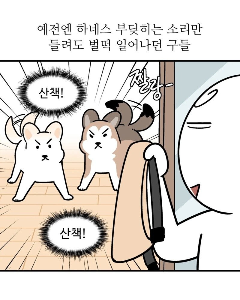 하네스 소리만 들려도 일어나던 개들.Manhwa