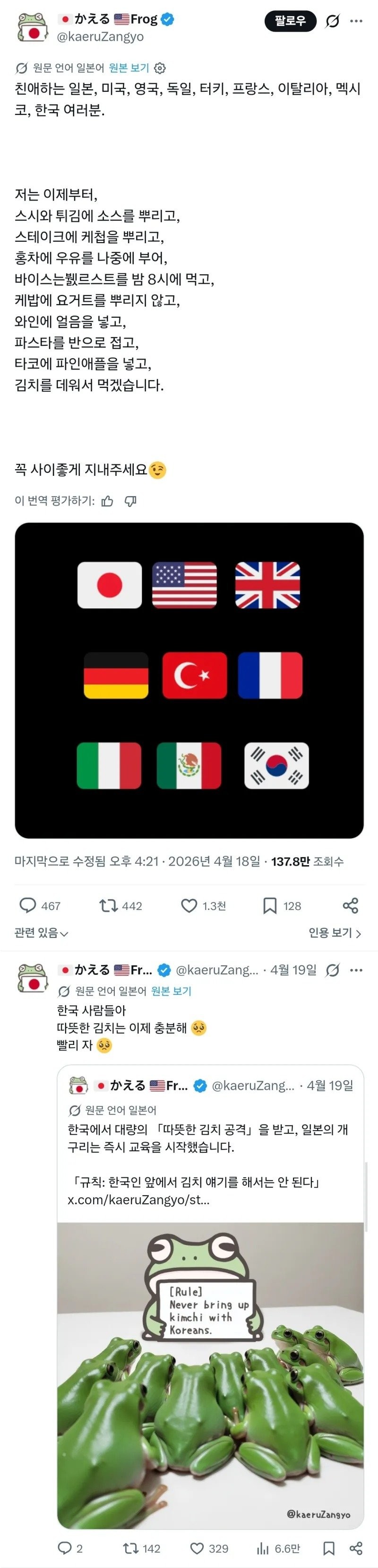 한국인들에게 김치 공격을 하려고 했던 일본인