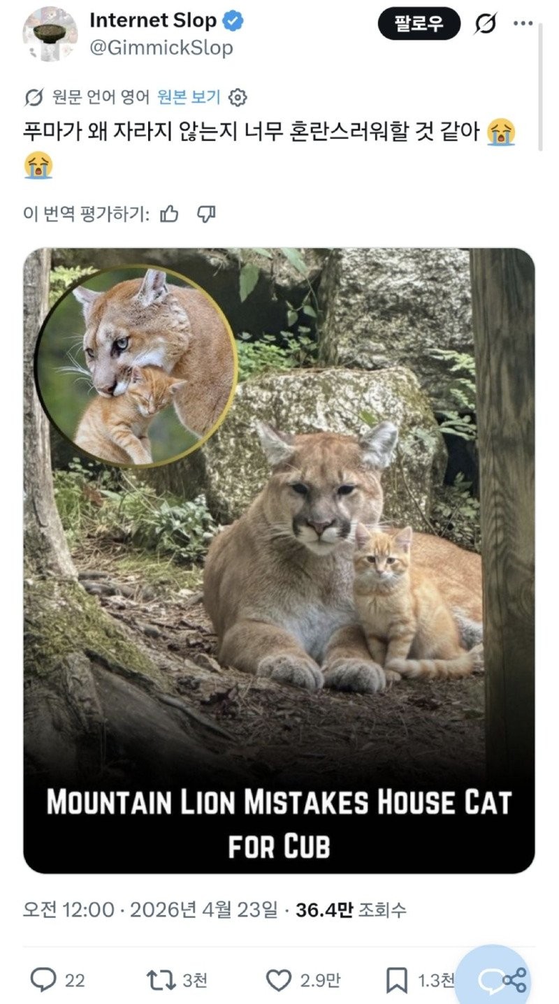 새끼가 왜 안 자라는지 걱정 되는 어미