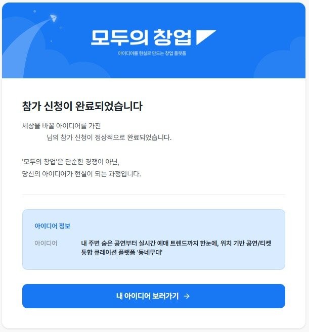 그리고 오늘, 이 제대로 작동하는 프로덕트를 무기 삼아 '모두의 창업' 이라는 프로그램에 방금 지원서를 냈습니다! 서류 한 장 덜렁 들고 갔던 예전과는 달리, 이번엔 당당하게 시연 영상과 사이트 링크까지 꽉꽉 채워 넣었습니다.
