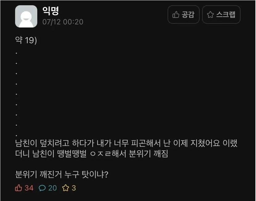 남친과 여친 분위기 깨진건 누구 탓.?