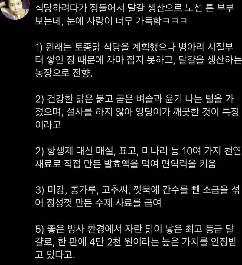 닭 식당하려다 닭이랑 정들어서 달걀 산업으로 노선 틈..
