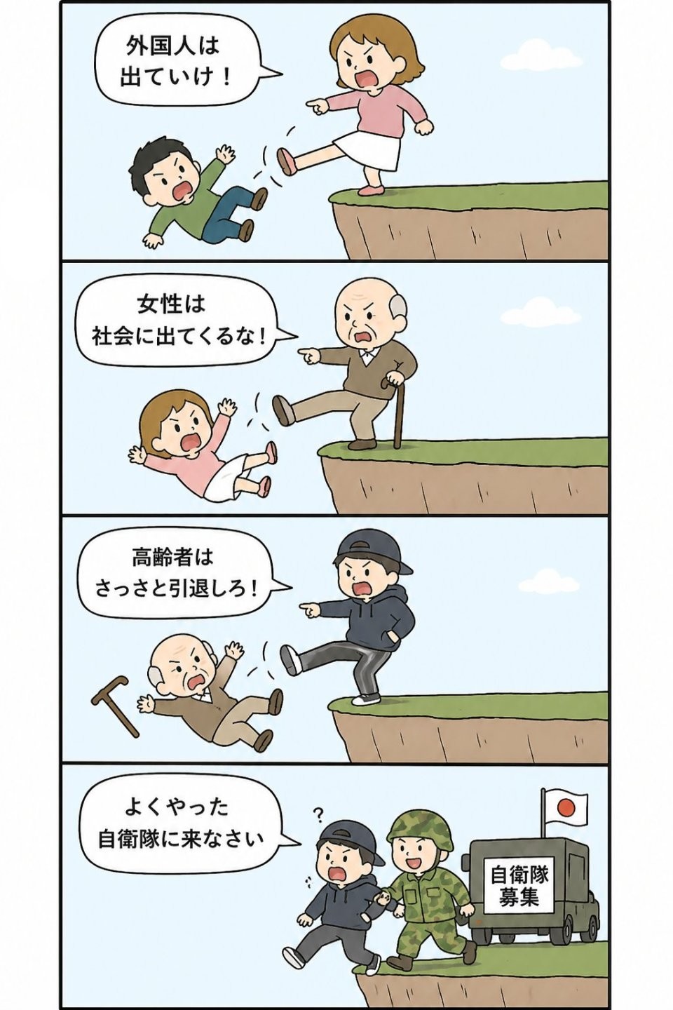 네 번째 컷: 잘했다. 자.위.대에 오너라.(자.위.대 모집)