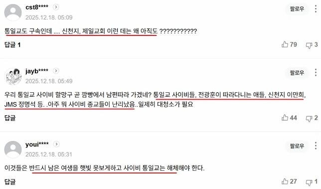 싸이비 통일교 똥 묻은 죄가 국가내란 리박스쿨당 9 이고 민주당이 1라면