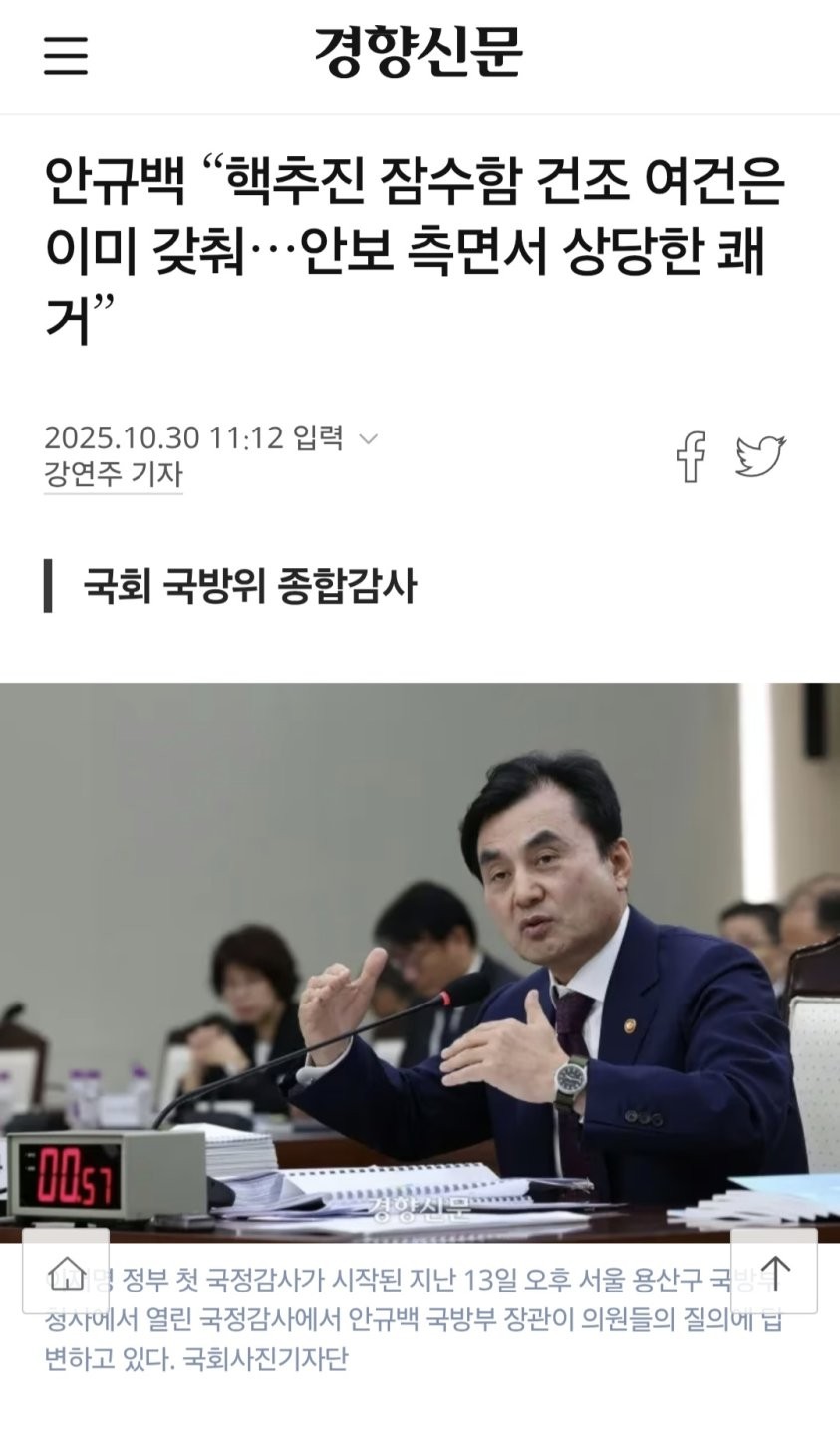 안규백 “핵추진 잠수함 건조 여건은 이미 갖춰 안보 측면서 상당한 쾌거