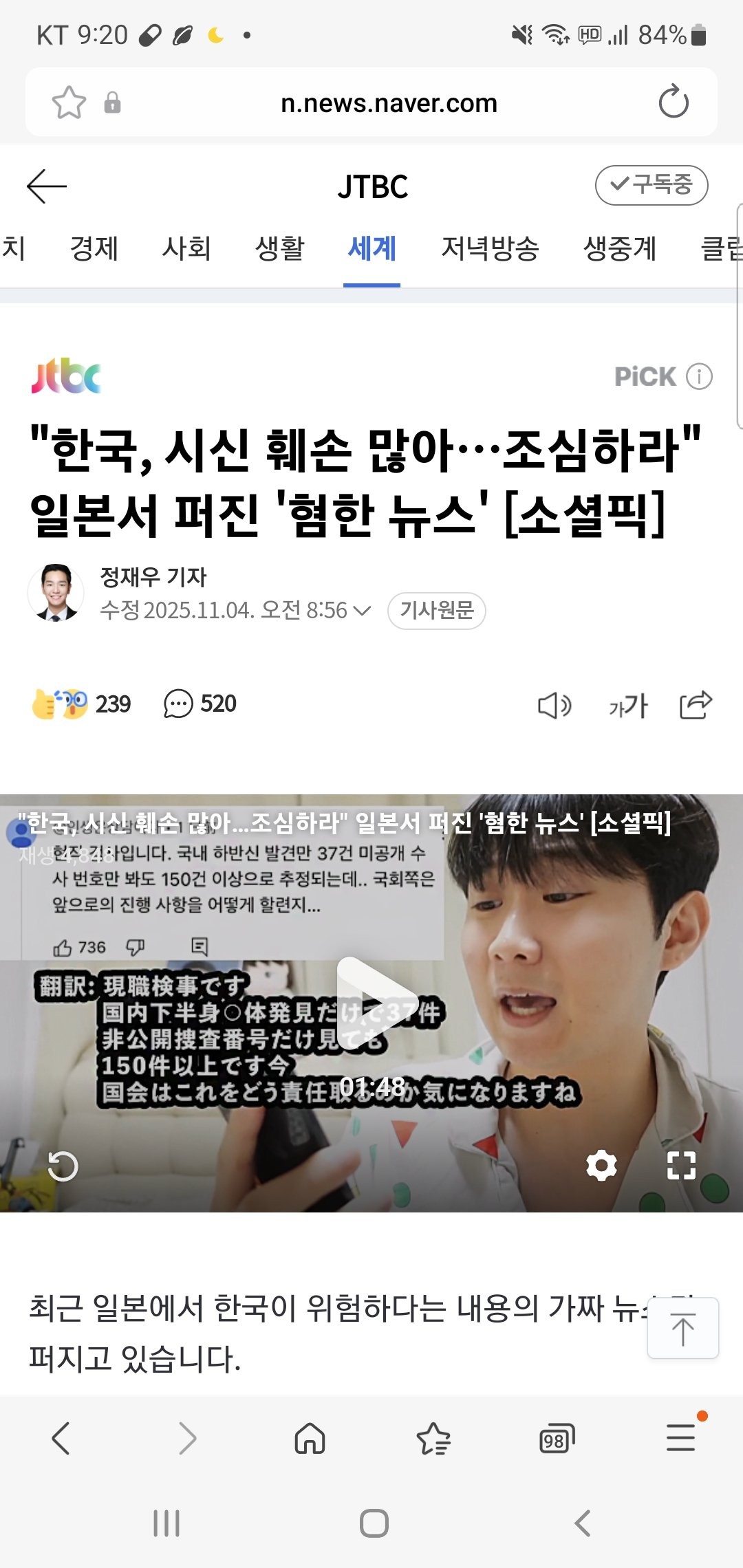 한국, 시신 훼손 많아…조심하라" 일본서 퍼진 '혐한 뉴스' [소셜픽]