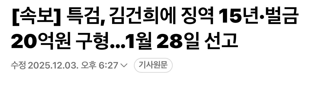 특검, 김건희에 징역 15년·벌금 20억원 구형...1월 28일