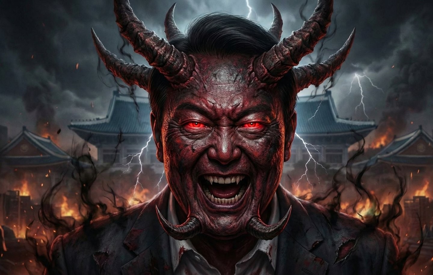 위에 보이는 악마가 내란수괴 윤석열이고, 마녀는 늙은계집 김건희입니다.