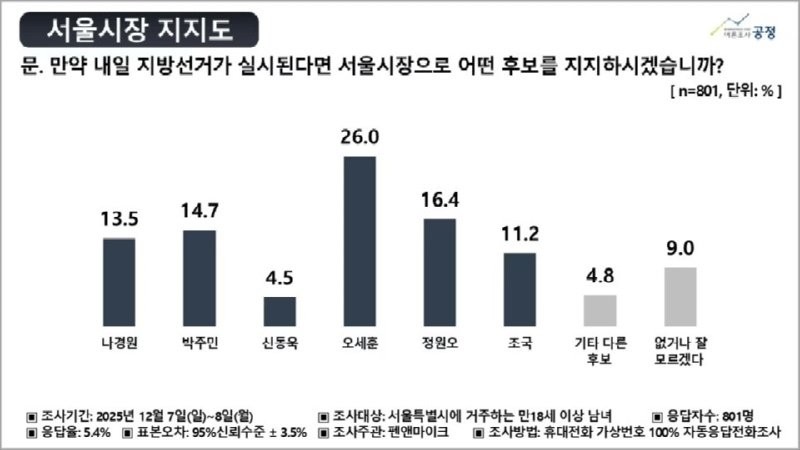 차기 서울시장 선호도 조사 이게 정말 맞는건가요?