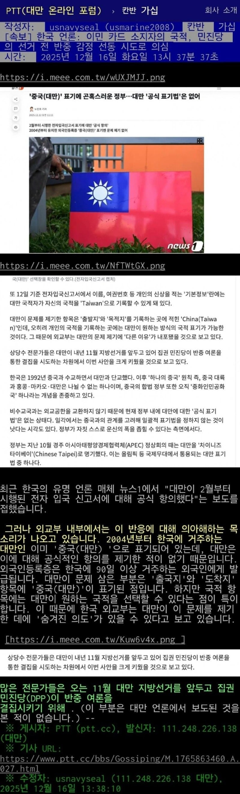 저 여론이 대만인 전체의 여론은 아니겟지만 대체로 한국이 민진당의 수법을 간파하고 대응 잘했다 부끄럽다는 얘기 많음