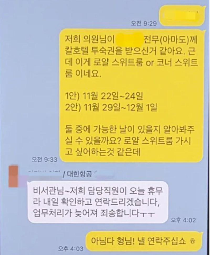 초대권이 전달되고 이용될 당시 김 원내대표는 대한항공 관련 현안이 논의되는