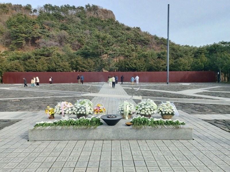 한 시민분이 추위속에 신발까지 벗고 예를 올리는 순간