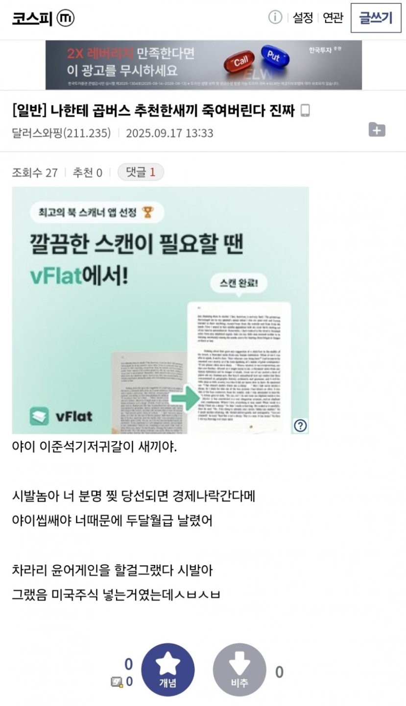 잼프 당선되면 경제 나락간다고 곱버스를 탄 사람의 최후