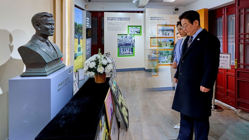 아울러 부인 김혜경 여사와 함께 루쉰공원 내에 위치한 '매헌 윤봉길 기념관'을 둘러보는 사진도 함께 게시했다.