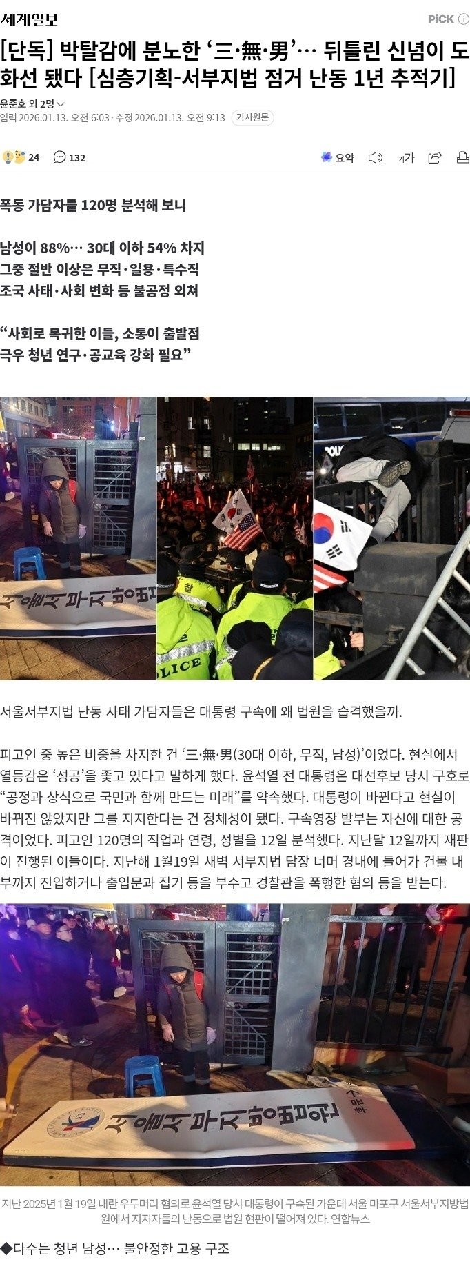 서부지법 점거 난동 1년, 박탈감에 분노한 "三無男"