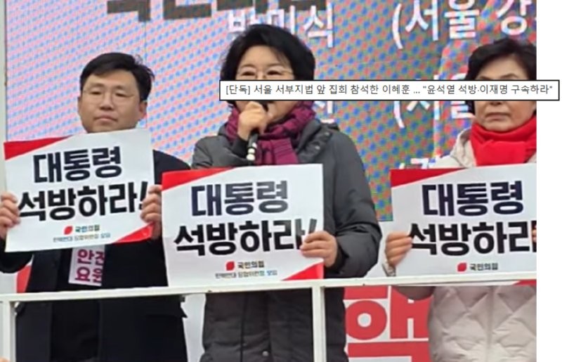 [단독] 서울 서부지법 앞 집회 참석 이혜훈 … "윤석열 석방·이재명 구속하라"