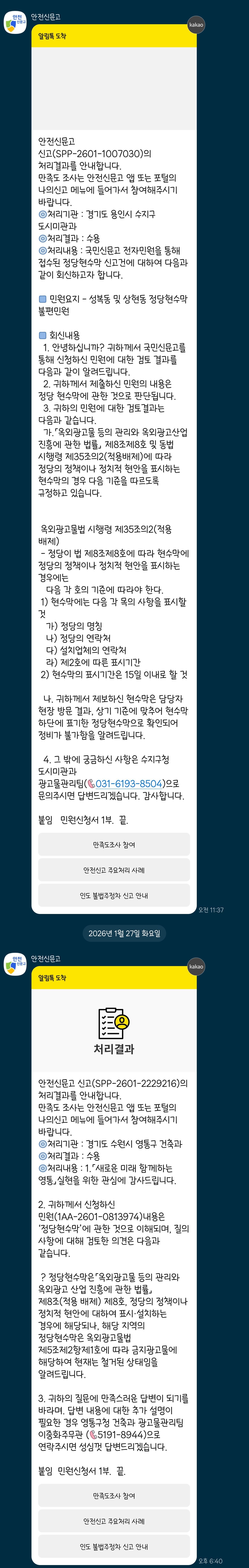 추가) 성남: 1월 22일에 신고했는데, 1월 27일까지 답변 없음.