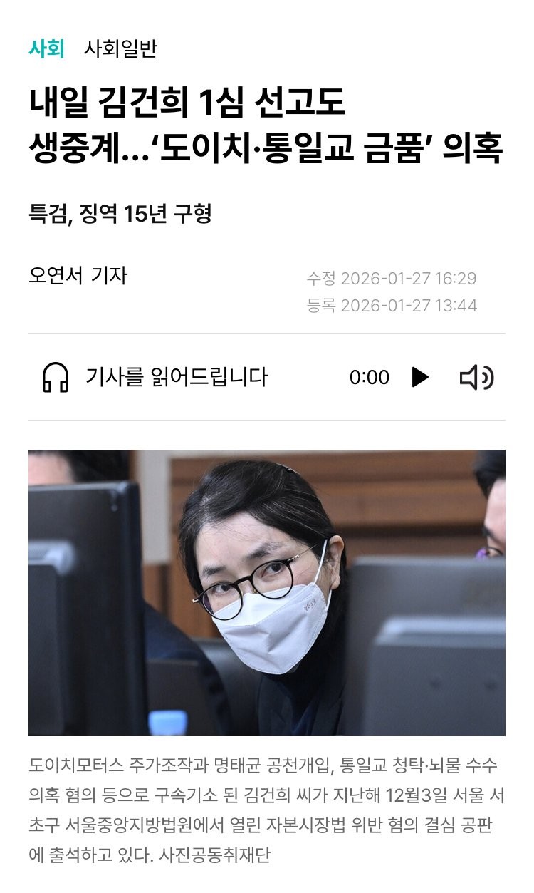 [기사] 내일 김건희 1심 선고도 생중계 (제목 요약)
