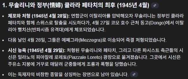 또랑뿌 일가는 파시즘 무솔리니와 무솔리니 첩년과 같은 마무리를 반드시 맺길..