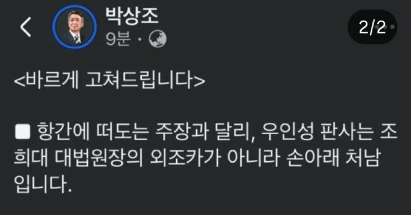 우인성 판사는 조희대 대법원장의 외조카가 아님