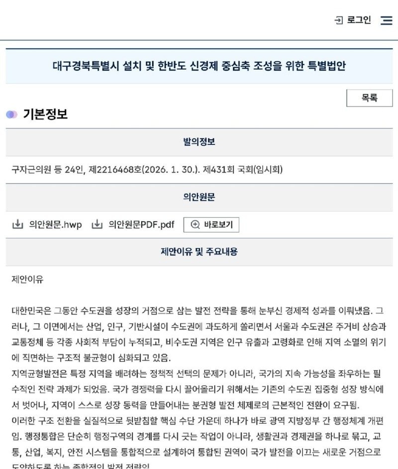 그냥 '대구경북 특별시 에서는 노예제를 합법화 한다' 라고 하지 그러냐