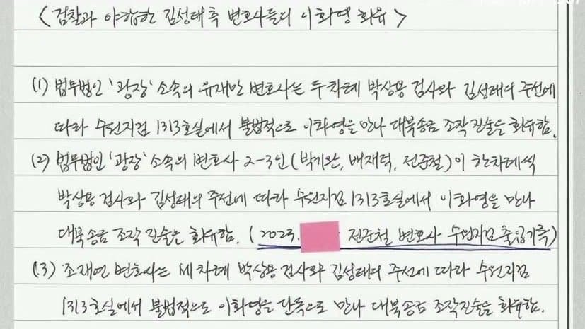 이성윤 전준철 해명 거짓 - 이화영 메모