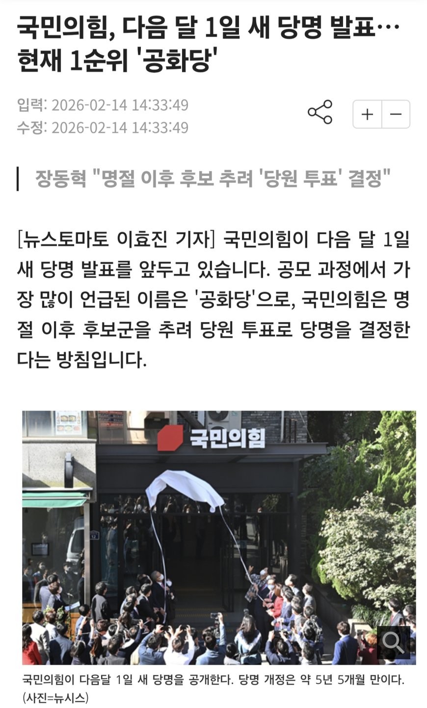 국힘 차기 당명 후보 1순위가 ..'공화당' 이라고?