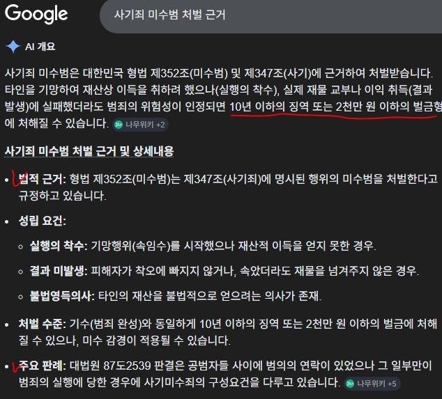 구구리 Ami나이 한테 사기 미수죄 처벌근거를 물어봄