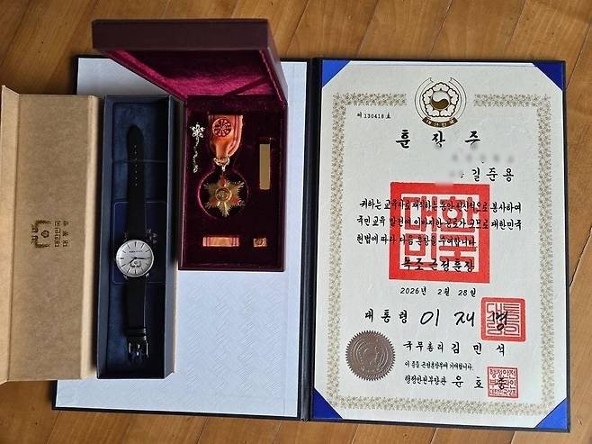 마땅하니 이재명 이름으로 다시 훈장을 수여 함