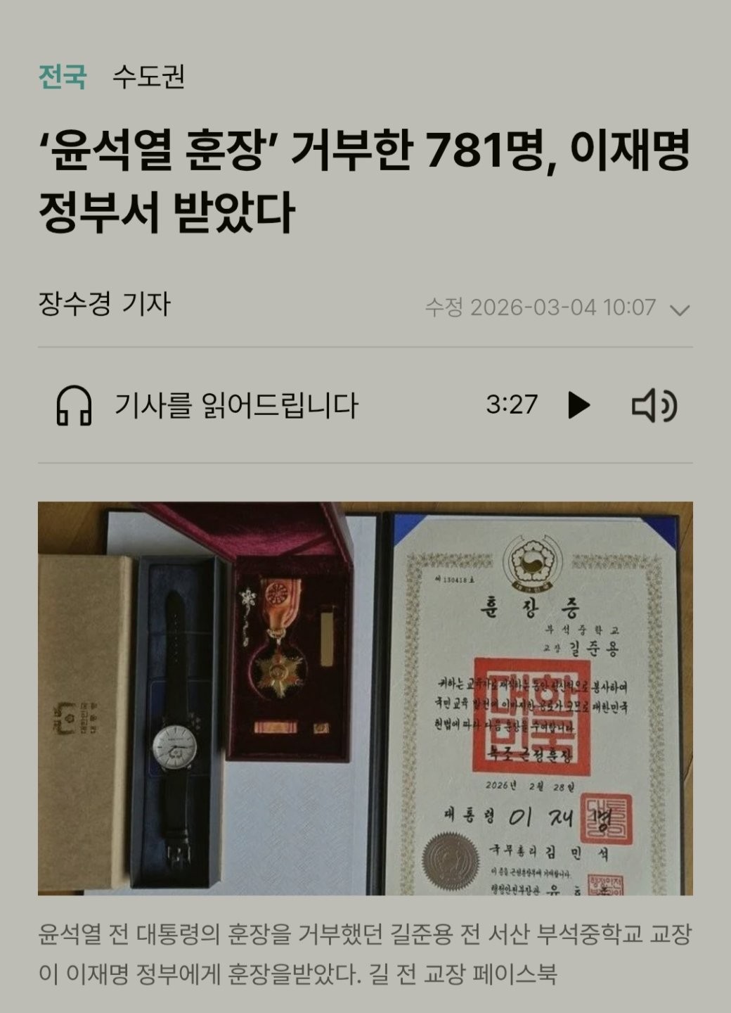 ‘내란수괴 훈장’ 거부한 781명, 이재명 정부서 받았다