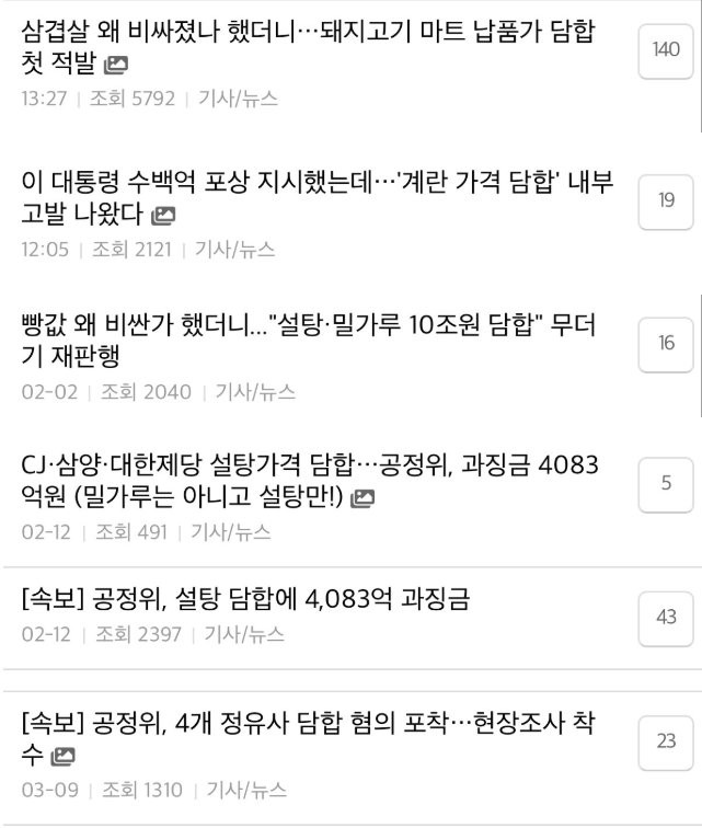 여기도 담합 저기도 담합 요지경 속이었습니다.