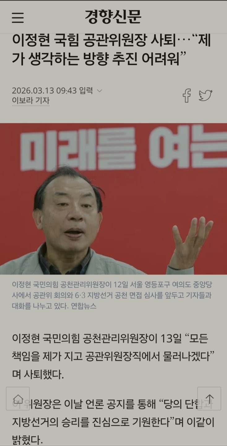 계엄사령관 이정현 국짐 공관위에서 사퇴