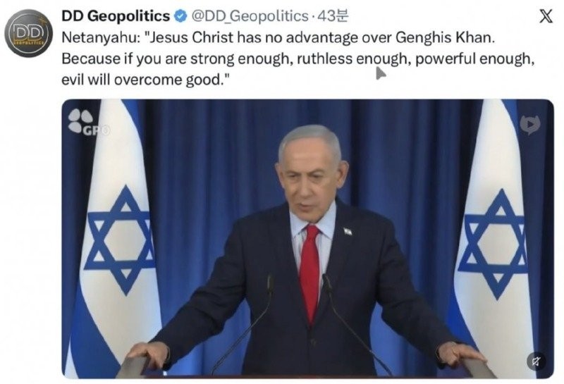 네타냐후 "예수는 징기스칸 앞에서는 무력했다."