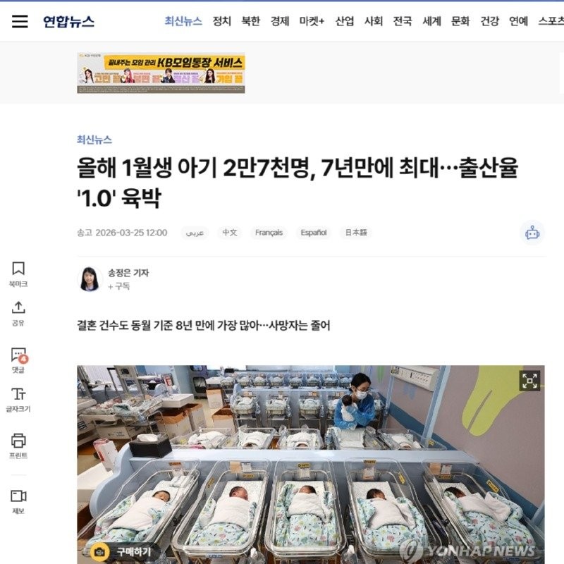 “응애” 올해 1월생 아기 7년만에 최대…합계출산율 ‘1.0’ 육박