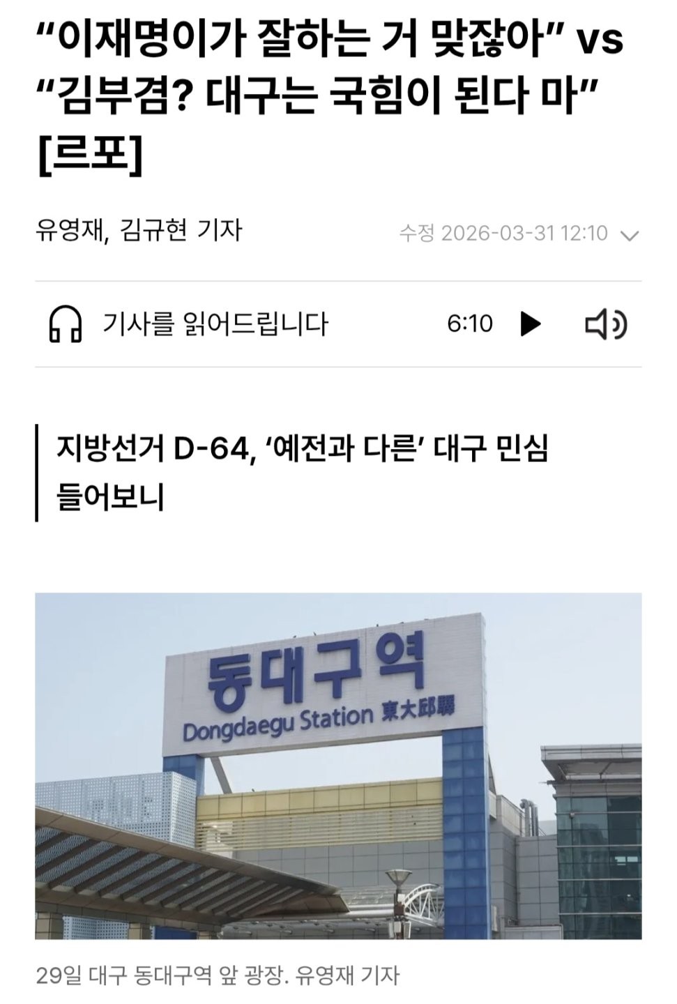 대구민심이 점점더 달라져가는게 기사에도 보이시죠?
