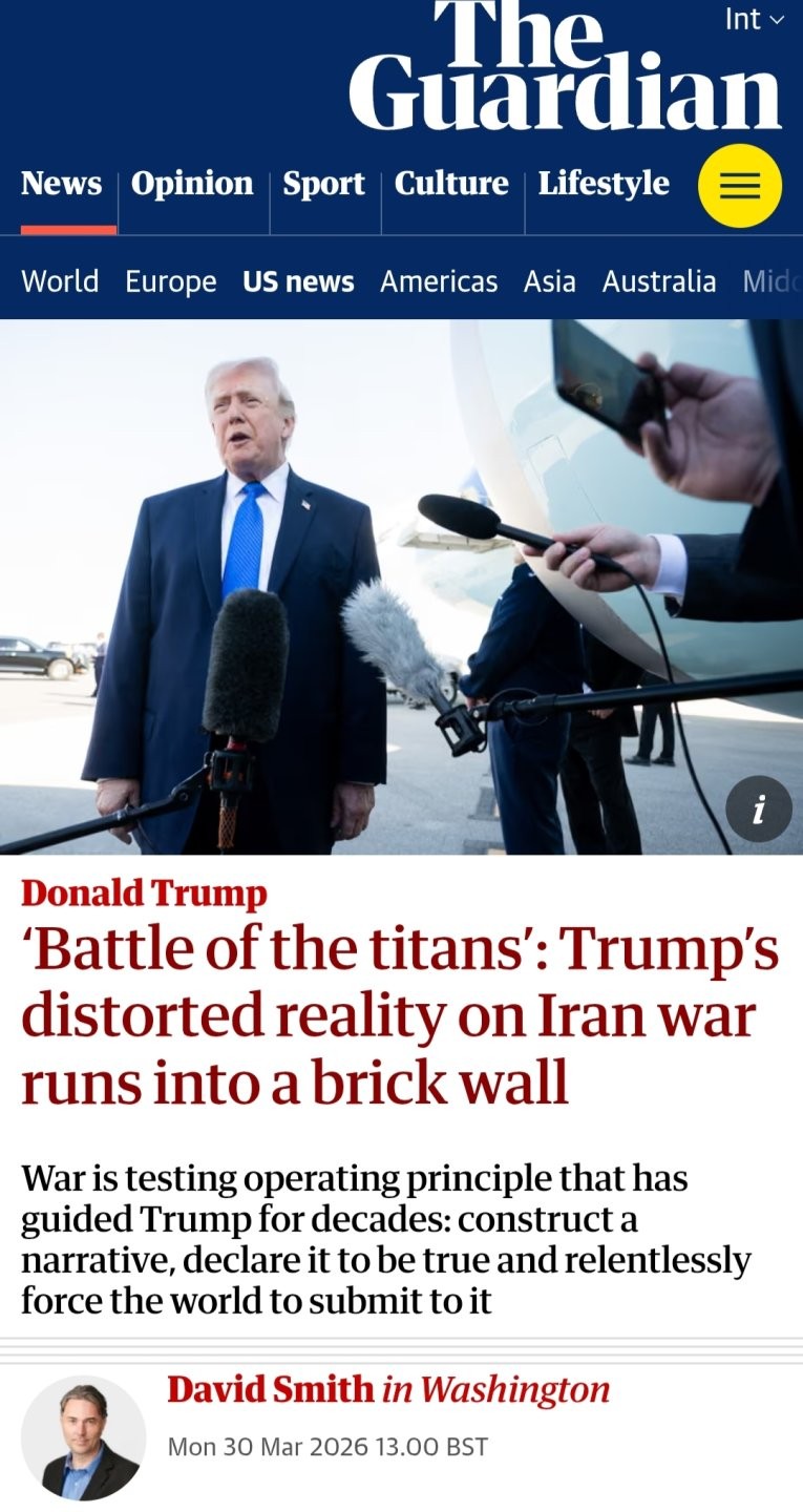 이란 전쟁에서의 트럼프의 실패에 대한 영 일간지 가디언의 보도