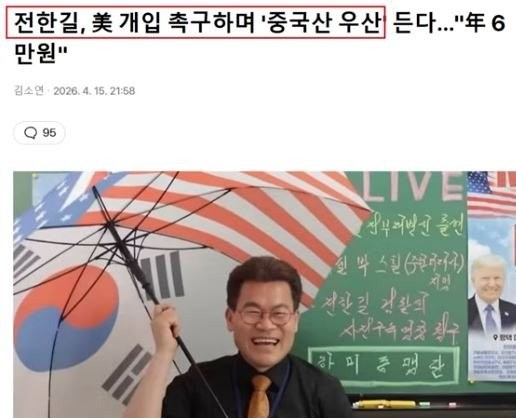 친중 전한길 '우산 장사' ... "정회원 1년 6만원? 심지어 중국산"