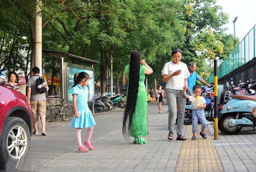 중국 정주에 사는 팬 리리(49)라는 이 여성은 25년 전 머리를 자르는 것을 하지 않았다고 말함
