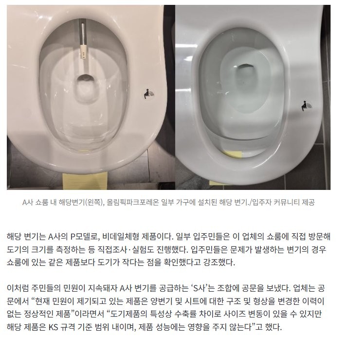 납품된 변기 구조 자체가 문제라는 얘기가 나오는 게 더 놀랍습니다