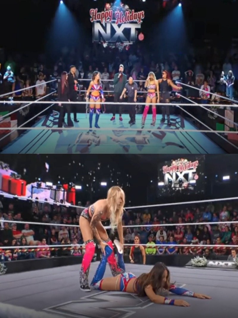 위민스 챔피언 팰런 헨리 & WWE NXT 위민스 챔피언 제이시 제인)가 등장함.
