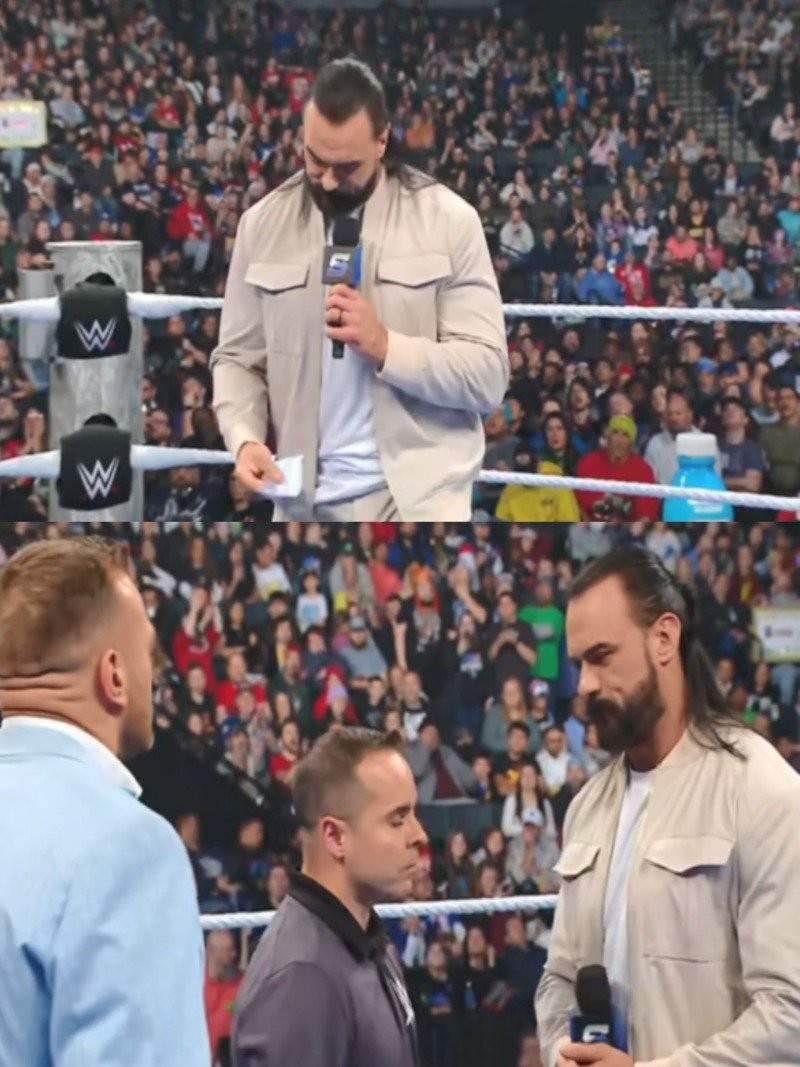 드류가 닉에게 벌금 수표를 건네고 드류가 앵글러에게 사과하는 척하다가 레슬러가 되지 못해서 심판을 하고 있는 것이라고